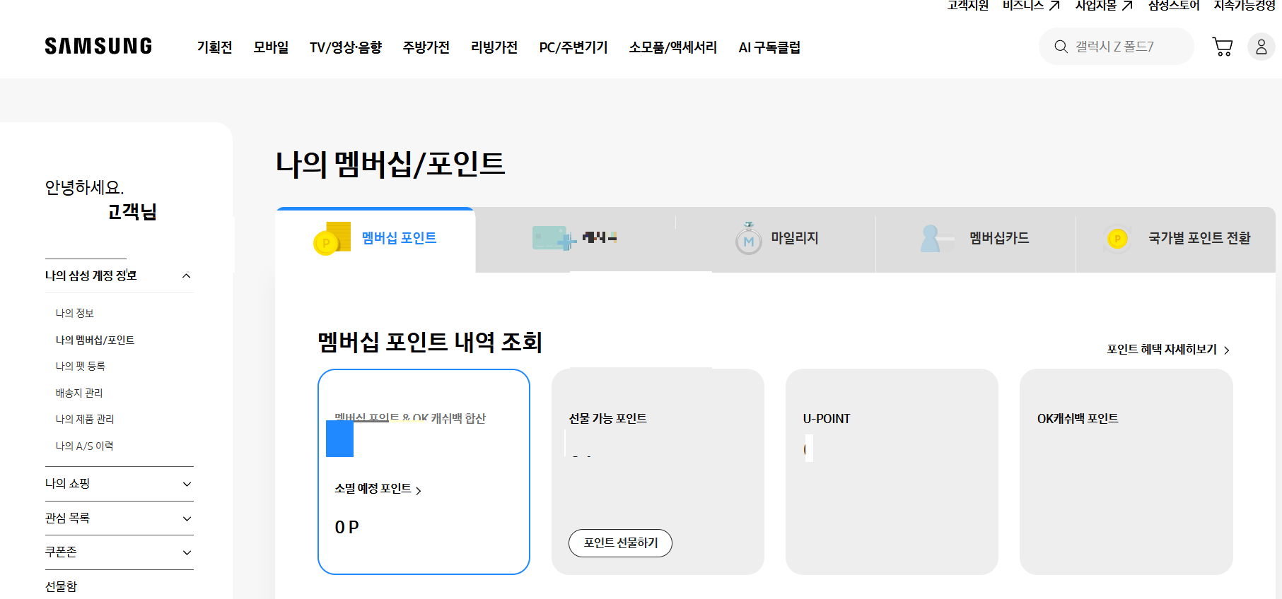2. 삼성닷컴 마이페이지에서 포인트 조회